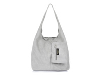 Włoska Torebka Worek Skórzana Zamsz Naturalny Szara U35 : Kolory - Szary, Srebrny