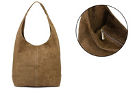 Włoska Torebka Worek Skórzana Zamsz Naturalny Taupe U35 : Kolory - Brązowy, Beżowy