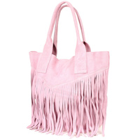 Pudrowo Różowa Torebka Damska Skórzana Zamszowa A4 Frędzel Duża L83 : Kolory - Różowy