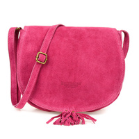 Różowa Torebka Damska Skórzana Zamsz Troczki Worek Beltimore W03