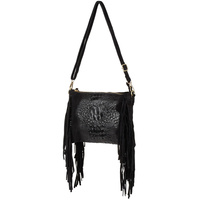 Czarna Damska Włoska Skórzana Torebka Frędzel Pozioma Z24 : Kolory - Czarny