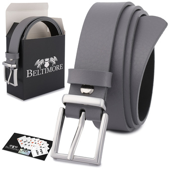 Skórzany Pasek Damski Do Spodni Sukienki Szara Skóra Nat 2,5 Cm Beltimore O07 : Kolory - Szary, Srebrny, Rozmiar Pasków - R.105-120 Cm