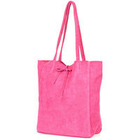 Damska Włoska Skórzana Torebka Worek A4 Troczek Fuksja W18 : Kolory - Różowy