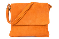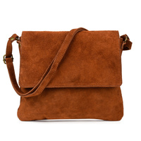 Camel Włoska Torebka Damska Zamszowa Listonoszka Z Klapą B67 : Kolory - Brązowy, Beżowy