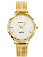 Zegarek Damski PERFECT F334-5 Złota bransoleta siatkowa mesh Biała tarcza