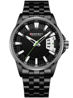 ZEGAREK MĘSKI PERFECT M114 Srebrna bransoleta Czarna tarcza + BOX