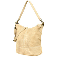 Torebka Skórzana Zamszowa Croco Listonoszka 2 Paski Taupe Beltimore W13 : Kolory - Brązowy, Beżowy