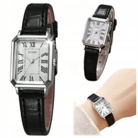 ZEGAREK DAMSKI CZARNY PASEK SKÓRZANY PROSTOKĄTNA TARCZA SREBRNY EKO JUSMI