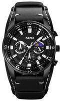 Zegarek Męski Czarny pasek skórzany czarna tarcza Skmei 1890BKBK + BOX