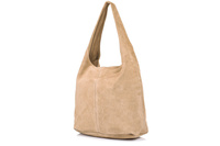 Włoska Torebka Worek Skórzana Zamsz Naturalny Beżowa U35 : Kolory - Brązowy, Beżowy