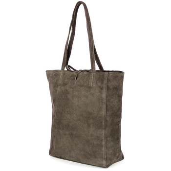 Beżowa Torebka Damska Skórzana Zamszowa A4 Frędzel Duża L83 : Kolory - Brązowy, Beżowy