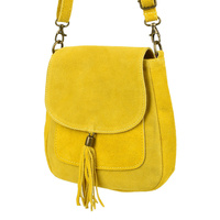 Skórzana Damska Zamszowa Listonoszka Z Klapą Żółta X40 : Kolory - Żółty, Złoty