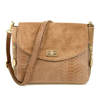 Włoska Torebka Skórzana Listonoszka Skóra Węża Taupe T96 : Kolory - Brązowy, Beżowy