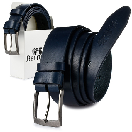 Beltimore Skórzany Licowy Pasek Męski Granatowy Premium E15 : Kolory - Granatowy, Rozmiar Pasków - R.90-105 Cm