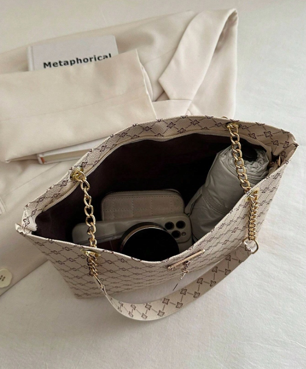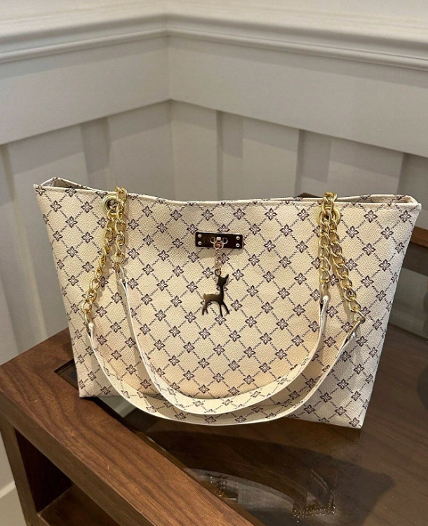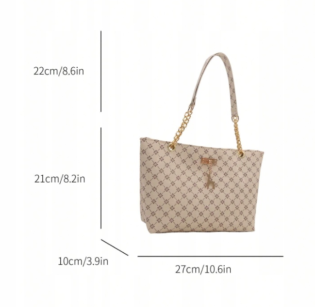 ❤️ Wyjątkowego uroku dodają jej złote okucia, które pięknie komponują się z beżowym odcieniem materiału i wprowadzają nutę elegancji. Torebka wyposażona jest w łańcuszek do noszenia na ramieniu, co sprawia, że prezentuje się lekko i kobieco, a jednocześnie zapewnia wygodę użytkowania. To uniwersalny model, który świetnie sprawdzi się zarówno w codziennym użytkowaniu, jak i podczas wieczornych wyjść, podkreślając charakter każdej stylizacji.