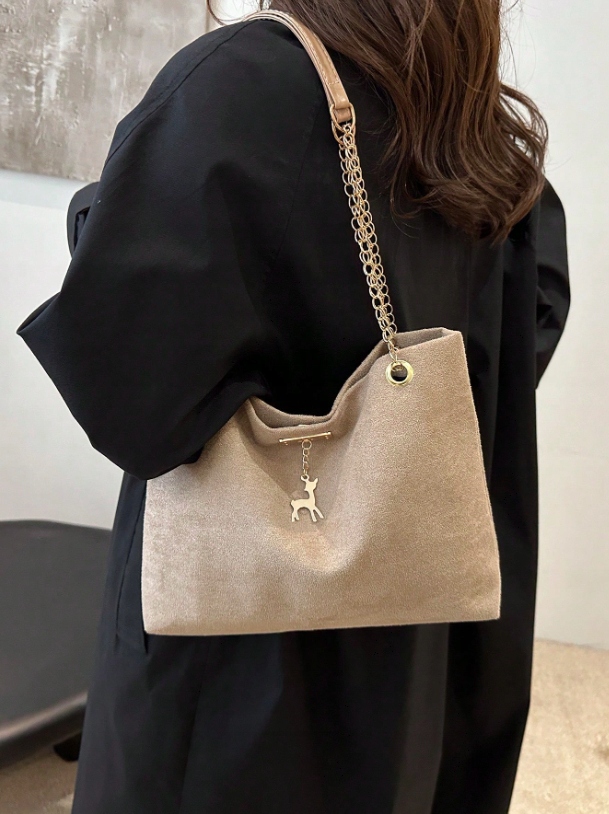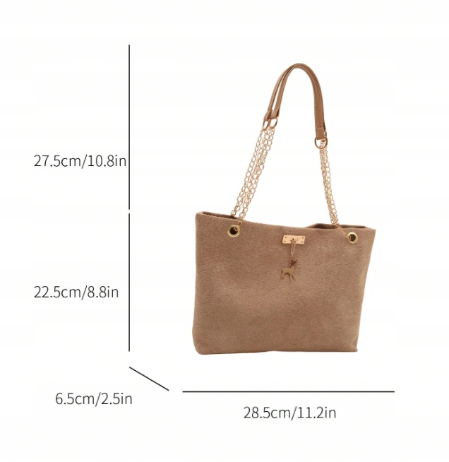 ❤️ Całości dopełniają złote okucia, które pięknie kontrastują z brązowym, zamszowym wykończeniem materiału, dodając torebce elegancji i szyku. Dzięki lekkości konstrukcji oraz wygodnemu paskowi do noszenia na ramieniu, model ten sprawdzi się w każdej sytuacji, zapewniając komfort i styl. To idealny wybór dla kobiet poszukujących małej, klasycznej torebki, która będzie jednocześnie praktyczna, modna i uniwersalna.