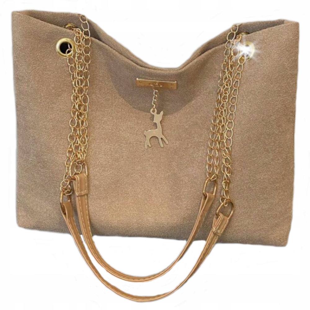 ✴️ BRĄZOWA TOREBKA DAMSKA NA RAMIĘ ZAMSZ BEŻOWA MAŁA LEKKA DO PRACY EKO D07