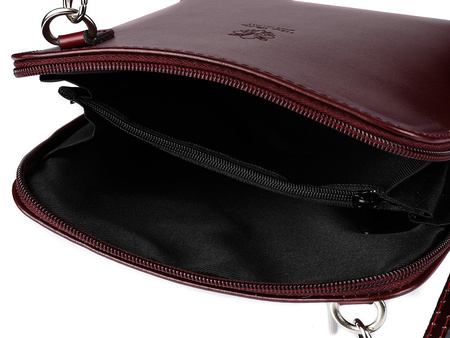 Burgundowa Vera Pelle Mała Torebka Skórzana Damska Listonoszka K03 : Kolory - Czerwony