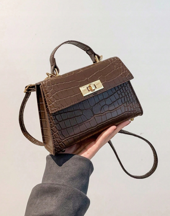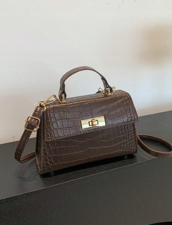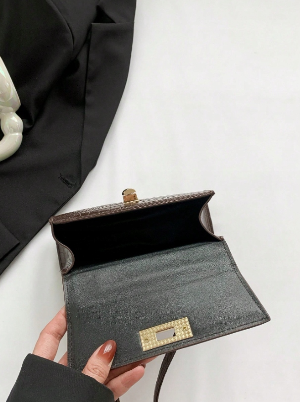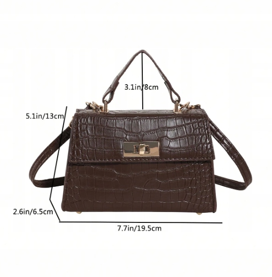 Stylowa damska torebka listonoszka w odcieniu ciemnego brązu to wyjątkowy model łączący elegancję klasycznego kuferka z nowoczesnym designem i praktycznym charakterem. Wykonana z wysokiej jakości skóry ekologicznej o fakturze croco, przyciąga uwagę subtelnym połyskiem oraz wyrafinowanym wykończeniem, które dodaje jej luksusowego wyglądu. Torebka jest niewielka, dzięki czemu doskonale sprawdzi się jako poręczny dodatek do codziennych oraz wieczorowych stylizacji.