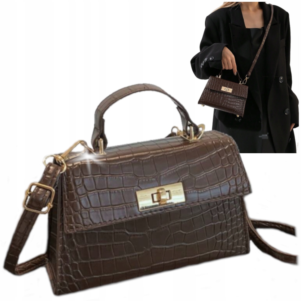 ✴️ Damska torebka Listonoszka Ciemno brązowa skóra Kuferek Mała croco na pasku uchwyt D11
