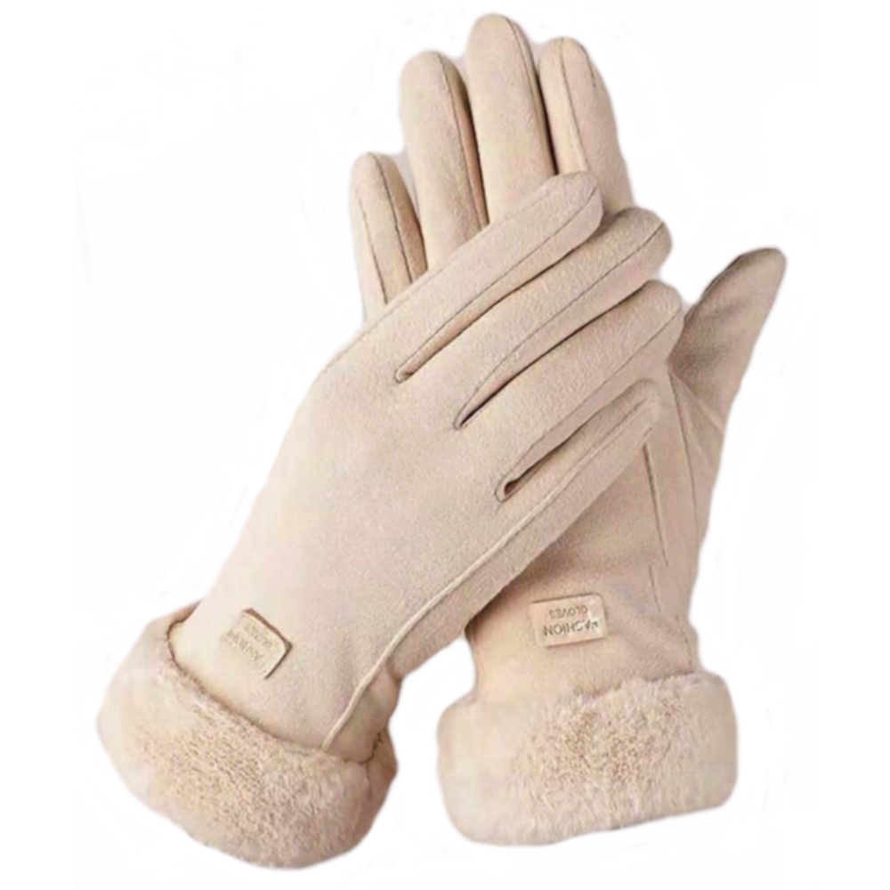 DAMSKIE RĘKAWICZKI ZIMOWE BEŻOWE OCIEPLANE KOŻUSZEK ELEGANCKIE DLA NIEJ