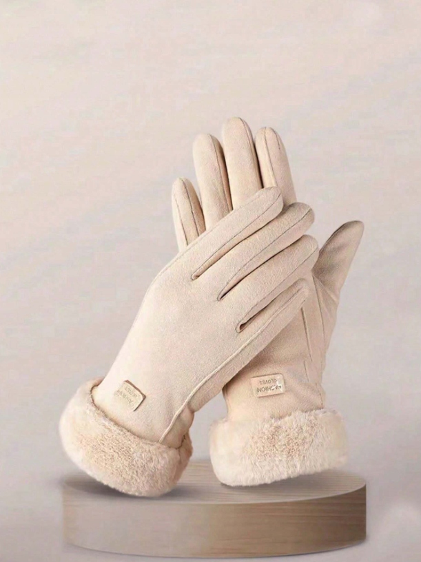 ✴️ DAMSKIE RĘKAWICZKI ZIMOWE BEŻOWE OCIEPLANE KOŻUSZEK ELEGANCKIE DLA NIEJ