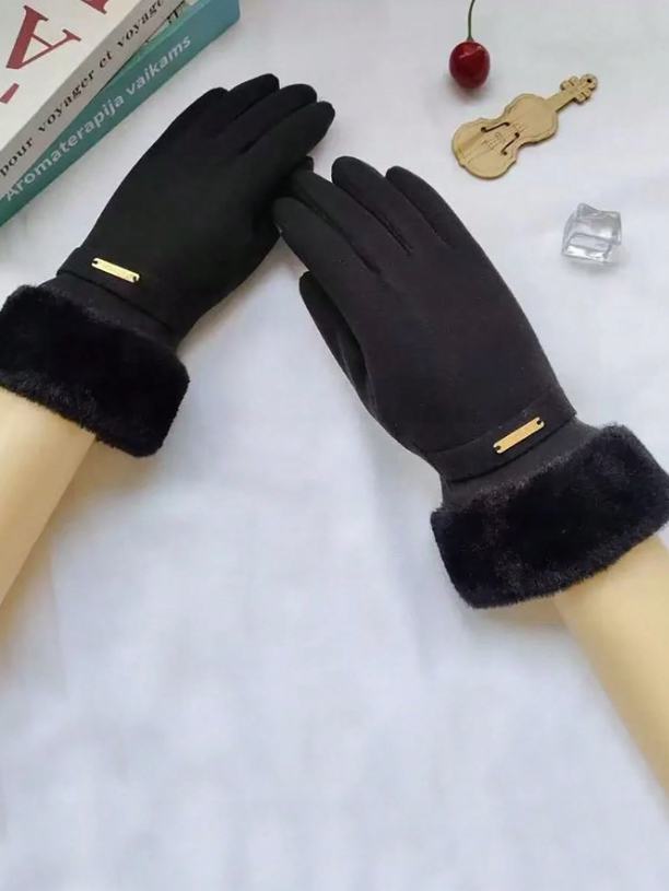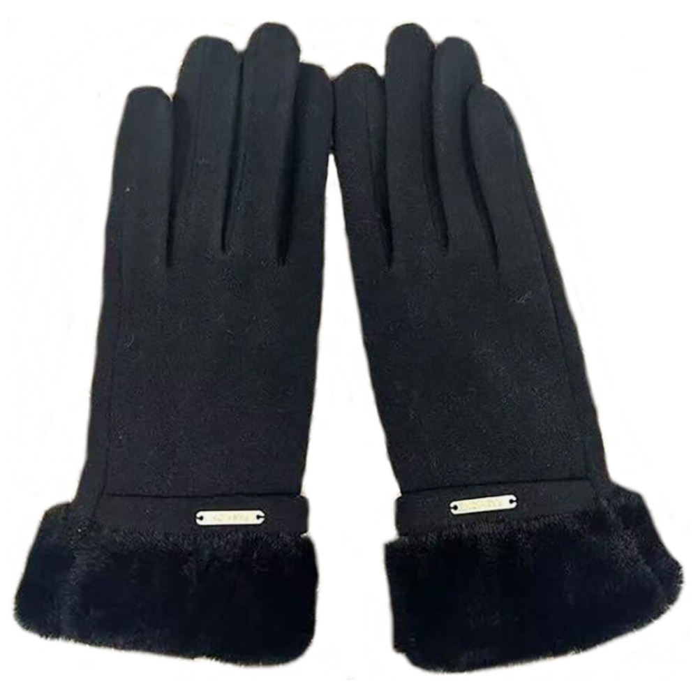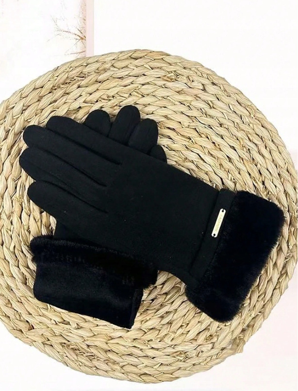Rękawiczki damskie zimowe w czarnym kolorze to połączenie elegancji, funkcjonalności i komfortu, idealne na chłodne dni. Wykonane w całości z wysokiej jakości poliestru, są wyjątkowo miękkie w dotyku, a jednocześnie trwałe i odporne na codzienne użytkowanie. Ich dolna część została ocieplona przyjemnym w dotyku futerkiem, które zapewnia skuteczną ochronę przed zimnem, gwarantując ciepło nawet w mroźne dni.