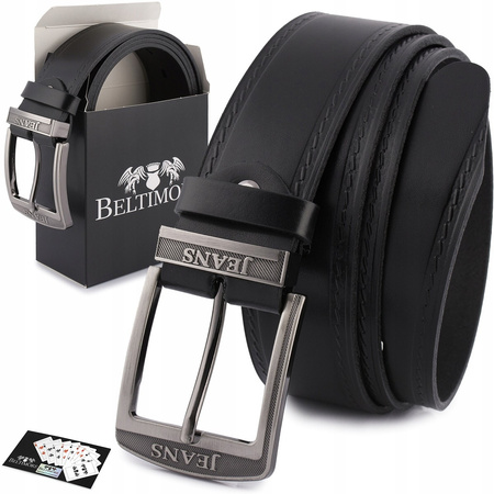 Pasek Męski Skórzany Premium Szeroki 4Cm Klasyczny Czarny Beltimore Jeans E01 : Kolory - Czarny, Rozmiar Pasków - R.110-125 Cm