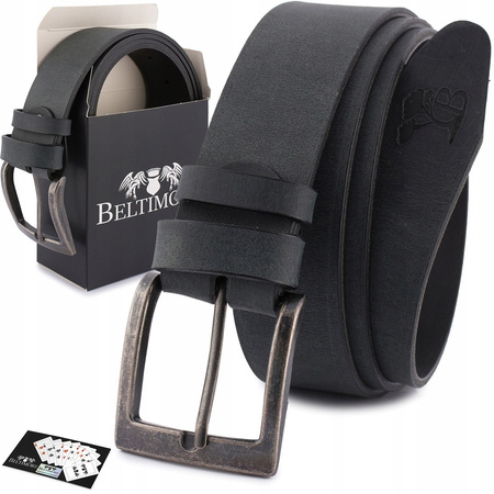 Pasek Męski Skórzany Premium Szeroki 4Cm Klasyczny Czarny Beltimore Jeans E11 : Kolory - Czarny, Rozmiar Pasków - R.115-130 Cm