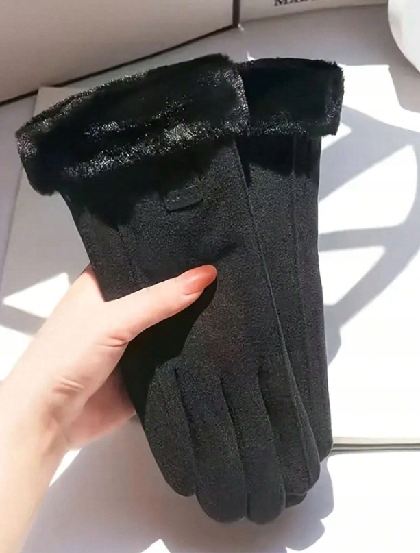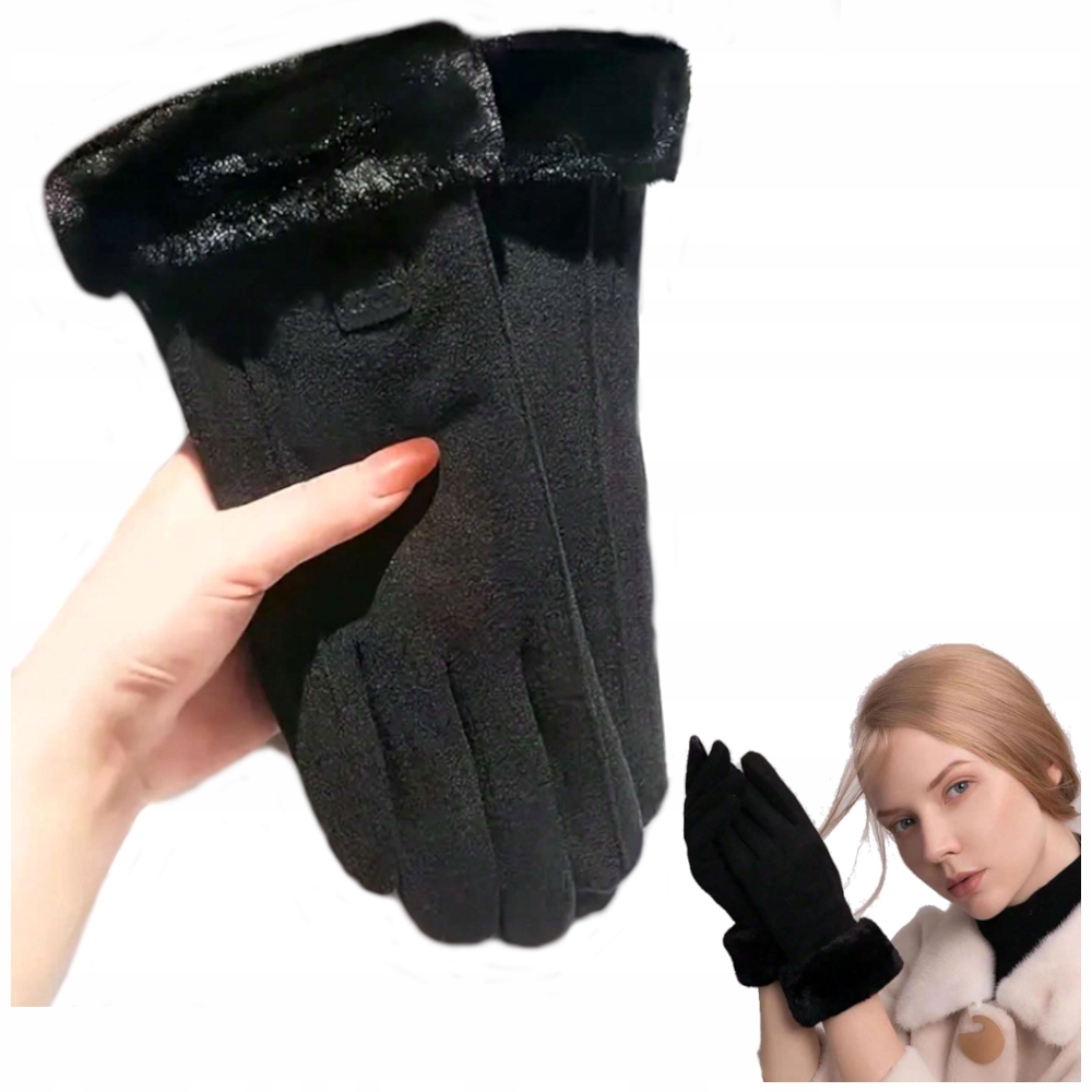 ✴️ RĘKAWICZKI DAMSKIE CZARNE OCIEPLANE ZIMOWE Z FUTERKIEM DO TELEFONU MODNE