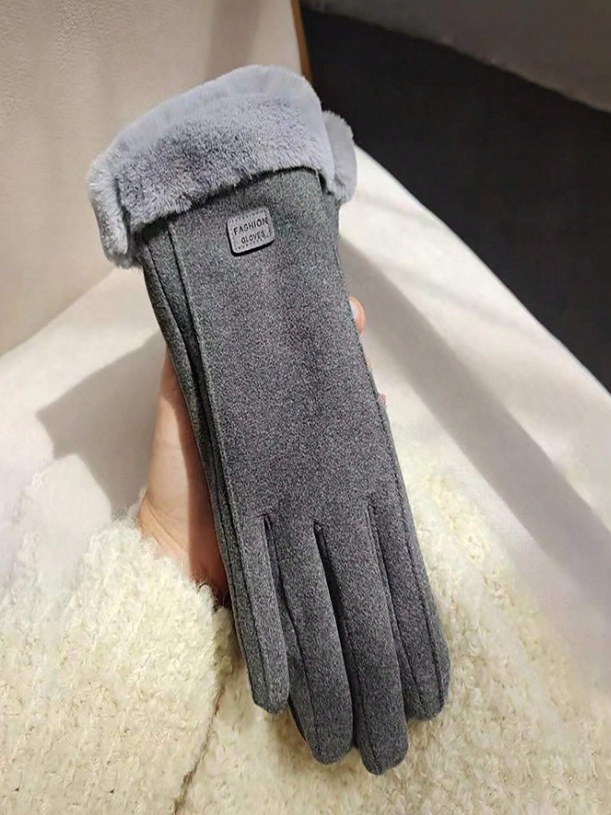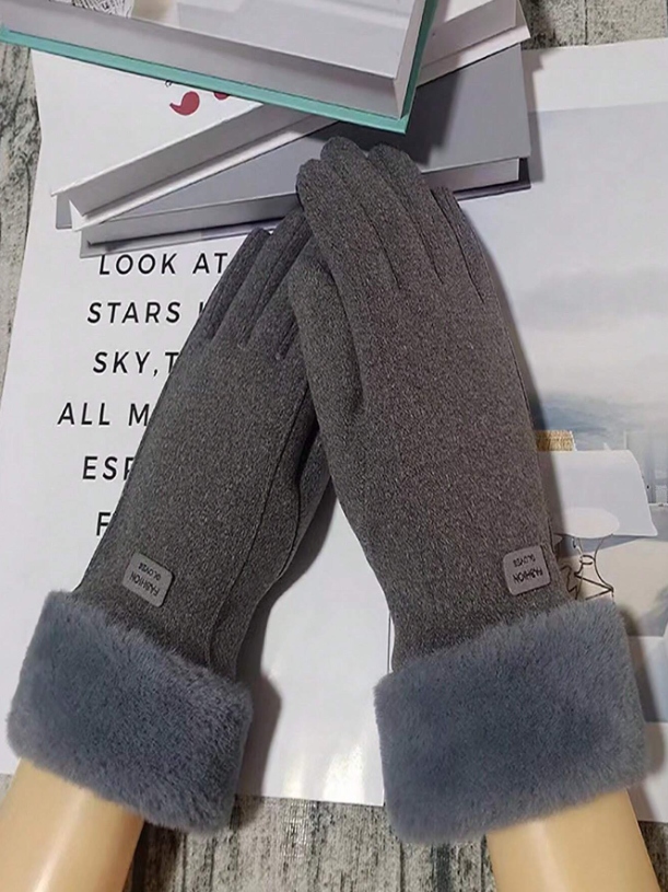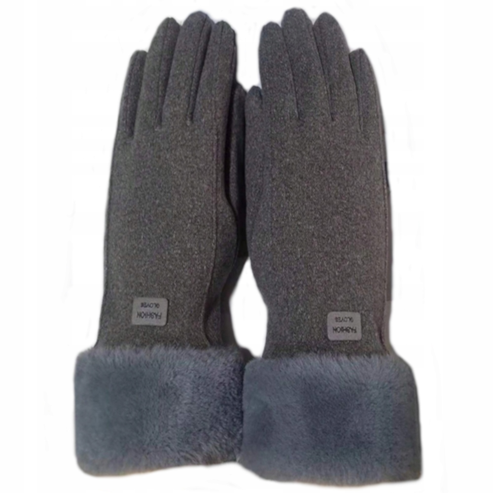 ✴️ RĘKAWICZKI DAMSKIE SZARE ZIMOWE Z FUTERKIEM CIEPŁE WYGODNE DO TELEFONU