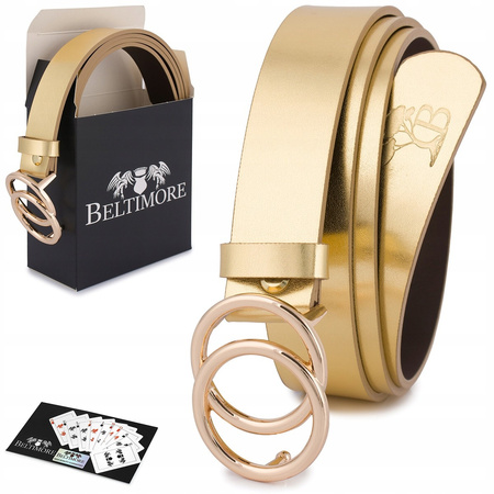 Skórzany Pasek Damski Do Spodni Sukienki Koła Klasyczny Złoty Beltimore B06 : Kolory - Granatowy, Rozmiar Pasków - R.95-110 Cm
