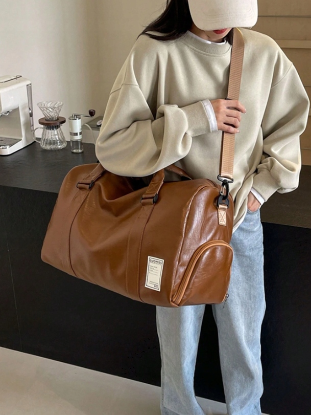 ⚜️ Torba podróżna brązowa model W02 to wyjątkowo eleganckie i funkcjonalne rozwiązanie dla osób ceniących wygodę oraz styl. Wykonana ze skóry ekologicznej najwyższej jakości prezentuje się niezwykle estetycznie, a jednocześnie jest trwała i odporna na codzienne użytkowanie. Klasyczny, brązowy kolor w połączeniu ze srebrnymi okuciami nadaje torbie nowoczesnego charakteru i sprawia, że świetnie pasuje zarówno do sportowych, jak i bardziej formalnych stylizacji. Dzięki swoim wymiarom – 48 cm długości, 28 cm wysokości i 26 cm głębokości – jest bardzo pojemna i bez trudu pomieści wszystkie niezbędne rzeczy na siłownię, basen, trening czy weekendowy wyjazd.