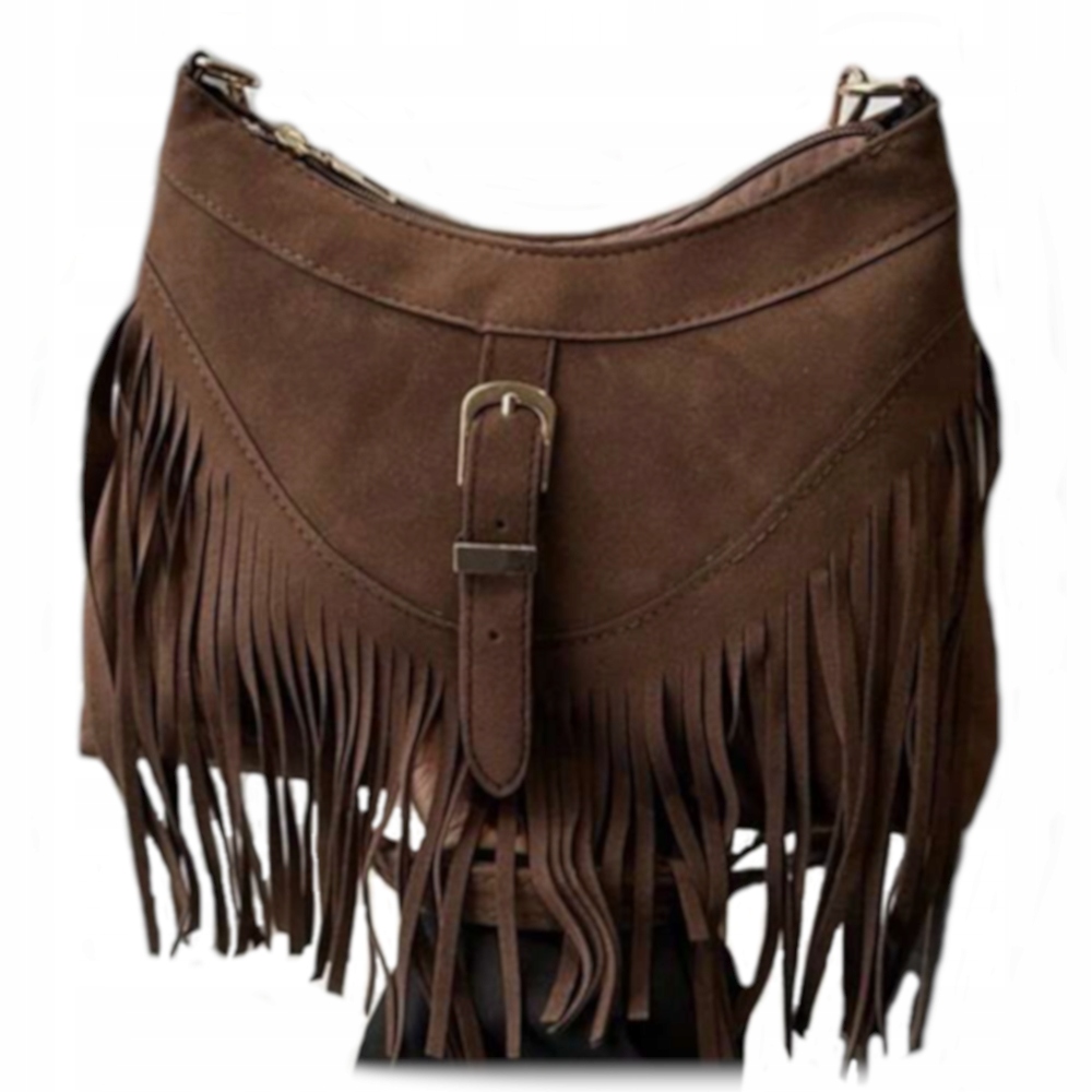 TOREBKA DAMSKA CIEMNO BRĄZOWA ZAMSZOWA FRĘDZLE MAŁA NA PASKU SKÓRA EKO D06