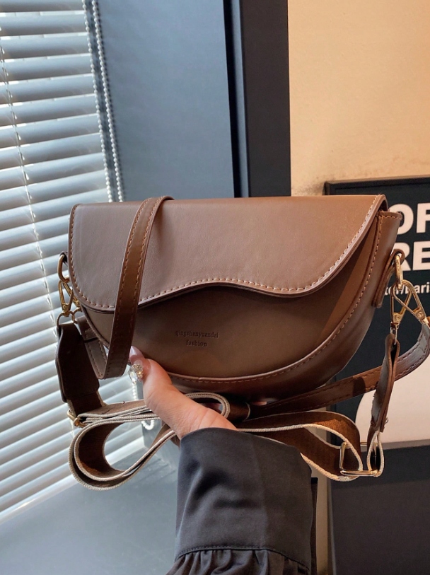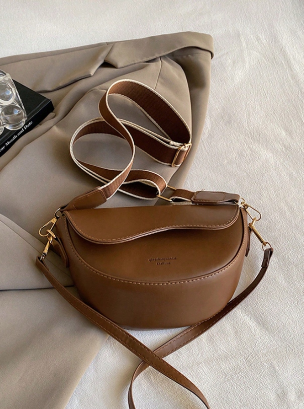 TOREBKA DAMSKA LISTONOSZKA CIEMNO BRĄZOWA SKÓRZANA NA RAMIĘ DWA PASKI D10