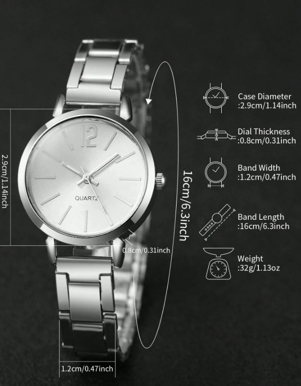 To stylowy, kobiecy dodatek, który doskonale sprawdzi się jako modny prezent dla niej – na urodziny, święta, rocznicę czy inną wyjątkową okazję. Należy pamiętać, że zegarek nie jest wodoodporny, dlatego powinien być chroniony przed kontaktem z wodą, aby jak najdłużej zachował swój elegancki wygląd i niezawodne działanie.