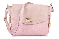 Włoska Torebka Skórzana Listonoszka Skóra Węża Pudrowy Różowy T96 : Kolory - Różowy
